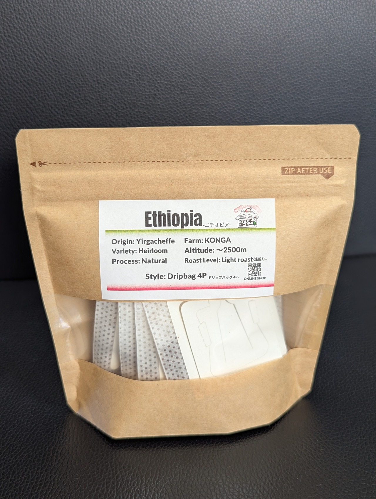 Ethiopia Yirgacheffe G1 KONGA Natural -浅煎り- ドリップバッグ1袋(4個入り)